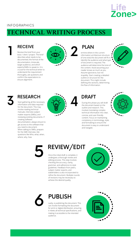 This Infographic explains the process a Technical Writer must follow to deliver a high-quality document.
